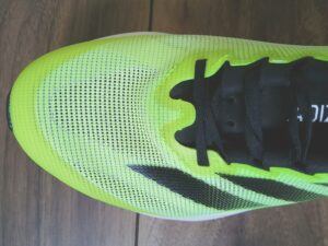 「エンジニアードメッシュ」のアッパーは薄く軽量感があります。前作よりも柔らかいと感じる一方で、非伸縮性でタイトなフィット感です。前作と同様に追従性の高いレーシング寄りの履き心地です。