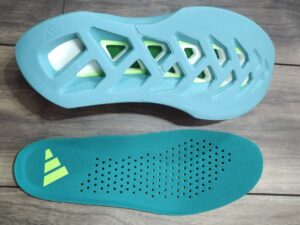 ミッドソール素材には「ライトストライクプロ」が使用されていますが履き心地は硬めでアディゼロシリーズとは全く別物です。