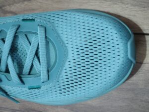 サイズ感は縦横ともに標準的です。アッパーは全体的にクッション性が高く柔らかい素材です。メッシュが粗いため通気性も高いです。